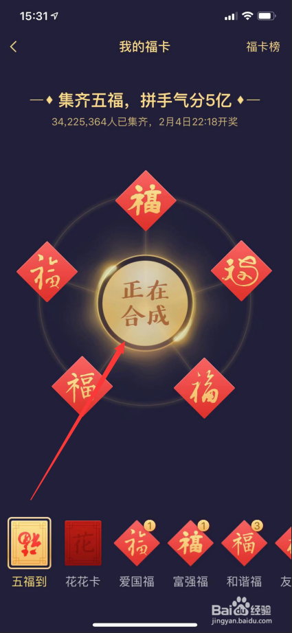 点击后,付出宝就会主动把五福卡进行合当作了,如下图所示。