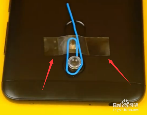 第五步就是用胶带把这个夹子摆布两头贴紧,要注重连结镜头和摄像头的位置瞄准。