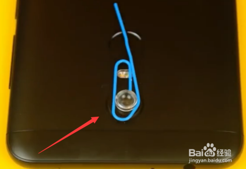第四步就是把夹有镜头的夹子瞄准手机摄像头的位置放好,如下图所示。
