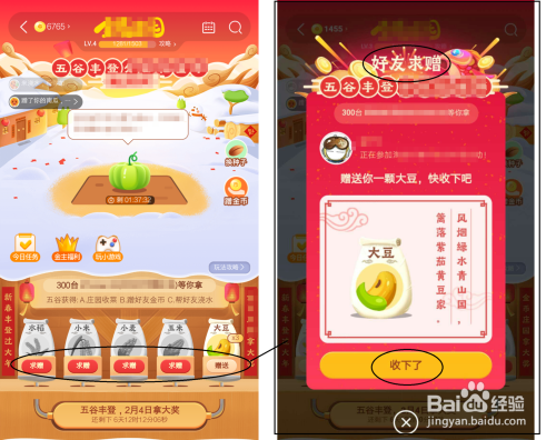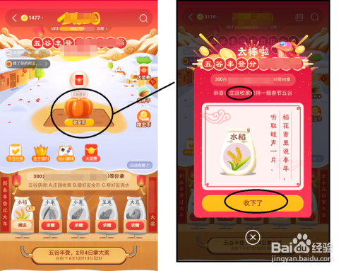 在2月3日23点前集齐五谷的人,可以介入抽奖,瓜分金币和有机遇获到手机。