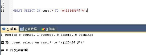 GRANT SELECT ON test.* TO 'wj123456'@'%';