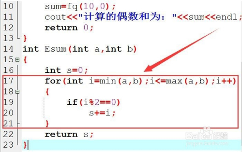 自界说函数Esum中,先界说一个整型变量s,保留乞降的成果。