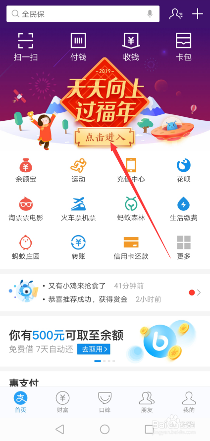 然后本身打开付出宝,点击集五福点击进入,如下图所示。