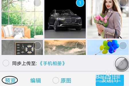 每张图片的右上角城市有一个圆形的复选框,可是我们不要勾选它,直接点击图片,然后在弹出的图片预览页即可看到“闪照”了,勾选今后就能将此照片的闪照发给对方;