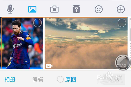 在跳转到的聊天窗口,我们点击会话框左下方的图片logo,然后下方就会弹出近期相册里添加的图片了;