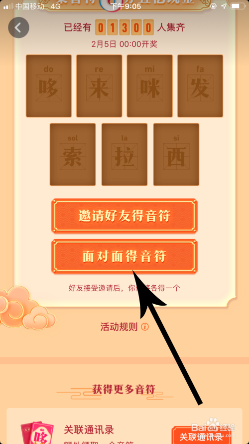 这时点击“联系关系通信录”右侧的“领取”按钮后,即可获得一个音符