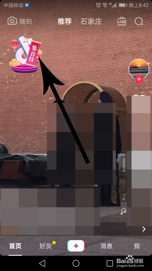 打开抖音,点击左上角的“集音符”图标,位置见下图