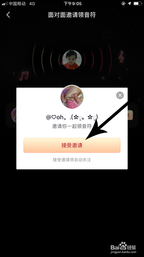 身边的伴侣打开集音符本家儿页后,找到“面临面得音符”并点击,这时您的用户名就会呈现,伴侣点击“邀请并存眷”