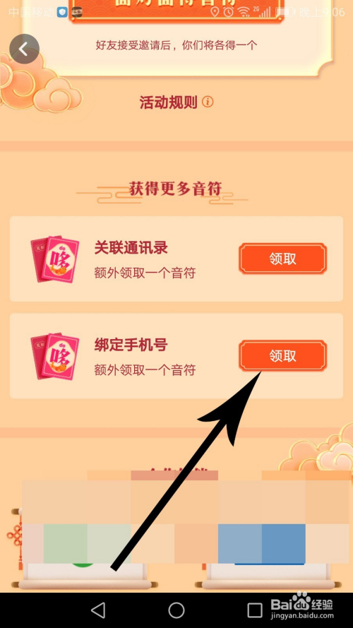 绑定完毕今后点击“领取”即可获得一个音符