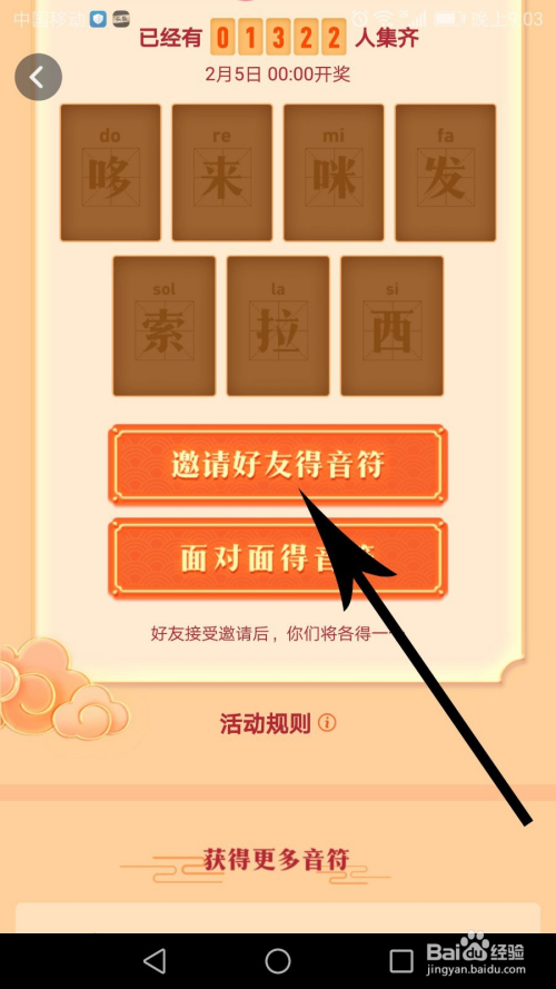打开集音符本家儿页今后标的目的下滑动,找到“邀请老友得音符”并点击 ,位置见下图