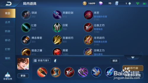 先买一个打野的刀,再来一个加攻速的鞋子,然后就补输出的装备就可以了,不外它的焦点是要买一个名刀的。