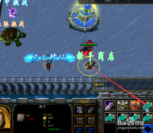 英雄呈现后直接去领取埋没法宝,然后在采办新手装备,如下图所示。