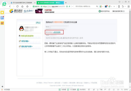 然后按照提醒完美身份证信息(当然是已经当作年的身份证号码),完美好后从头登录就可以了,如图所示。
