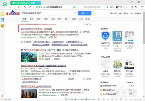 首先我们打开搜刮引擎,输入关头字“防陷溺系统腾讯游戏”,如图所示;