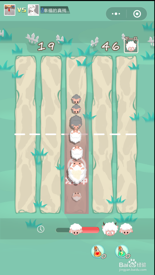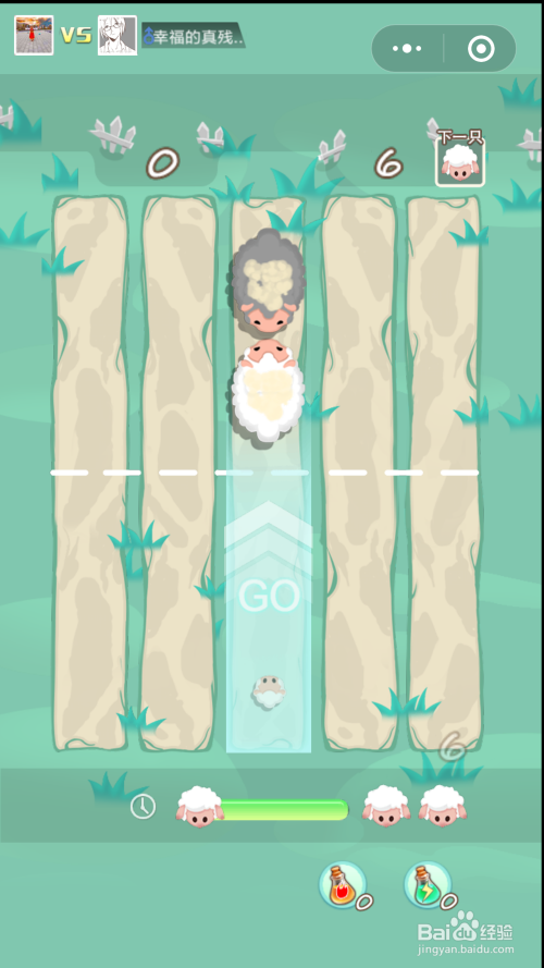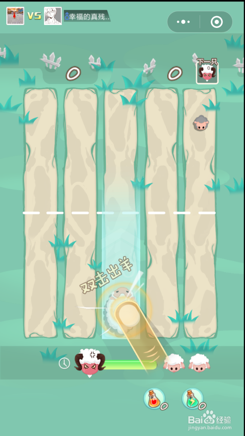 进入游戏起头界面,左上角即可显示你的pk敌手,你即刻按下方提醒的手势双击出羊位置,小羊羊即可出来。也可以选择其它轨道出羊。
