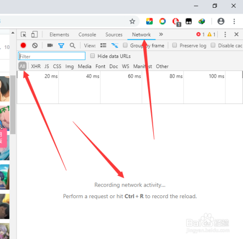 之后我们点击选择【network】,【all】,点击电脑键盘上的【F5】键刷新页面,而且播放阿谁视频