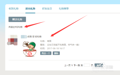 此刻大师点击页面上端的【送出的礼品】