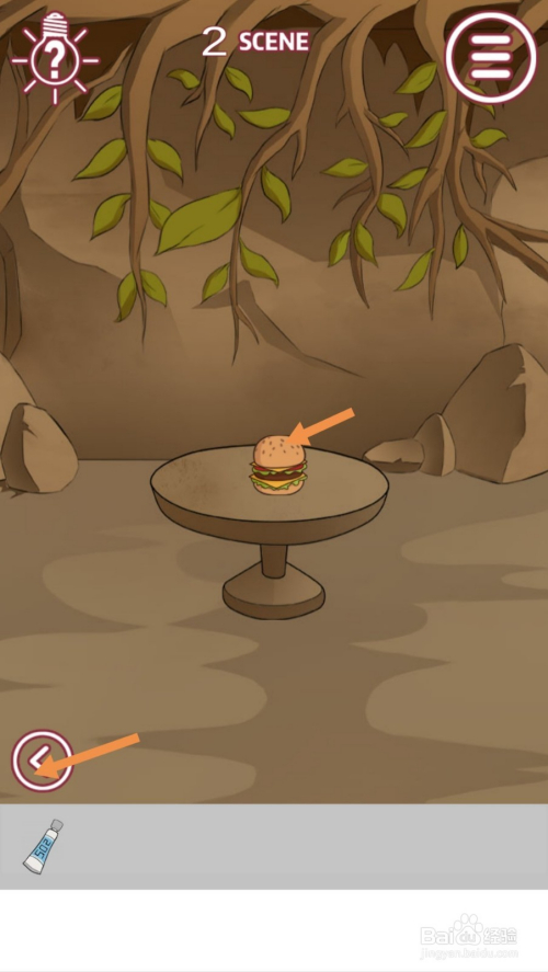 获得502胶水后,先点击汉堡上的芝麻,然后点击标的目的左箭头到左边去。