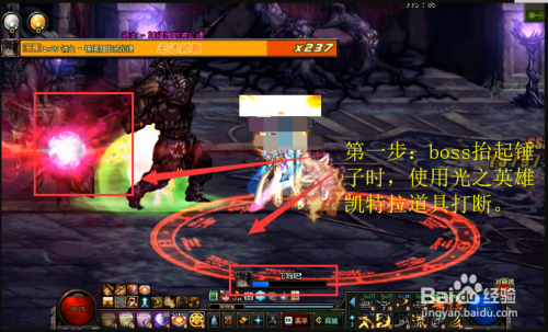 DNF被侵蚀的封印区域攻略步调二:打失落boss90%血量今后,boss会抬起锤子。这时辰利用光之英雄凯特拉道具筹算boss的技术。