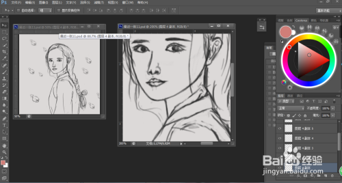 然后会呈现两个窗口(如图所示),你对此中一张图片所作的处置会同步反映到另一张图片上。在进行细节描绘的时辰,不妨将另一张图片缩小,以便不雅察整体结果,实时点窜。