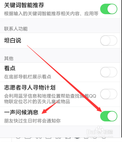 点击在之后小绿点消逝,如许就封闭了老友生日提醒动静啦