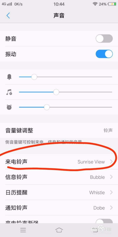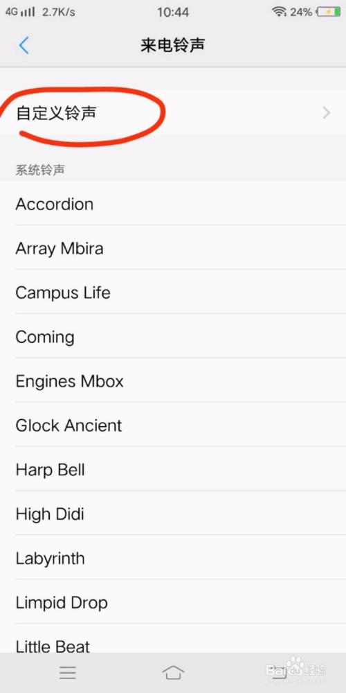 点进去,后面有个蓝色小勾勾的就是今朝正在利用的铃声,你可以选择其他系统铃声,也可以自界说。