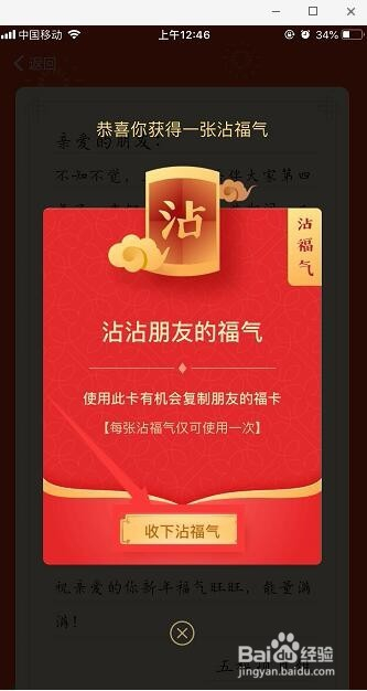 如许就获得沾福分卡了,点击“收下沾福分”。