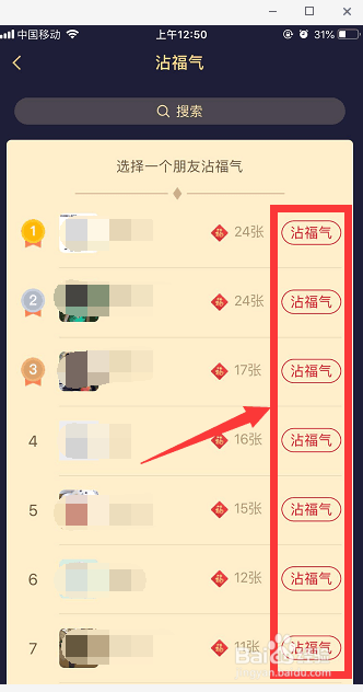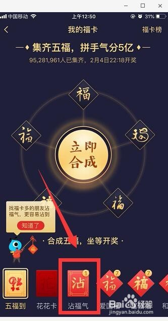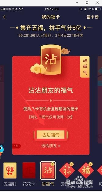 这里就会显示老友的福分卡数目,可以点击“沾福分”,随机沾一张伴侣的福卡。