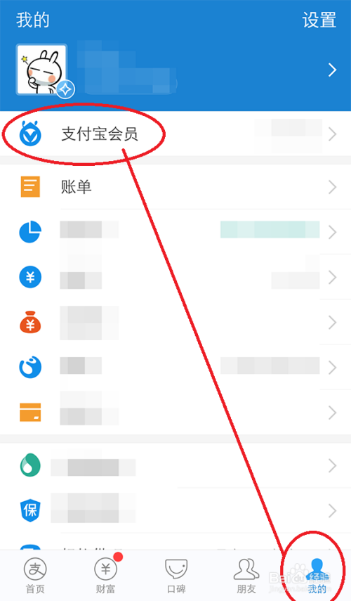 打开付出宝,选择“我的”点击【付出宝会员】。
