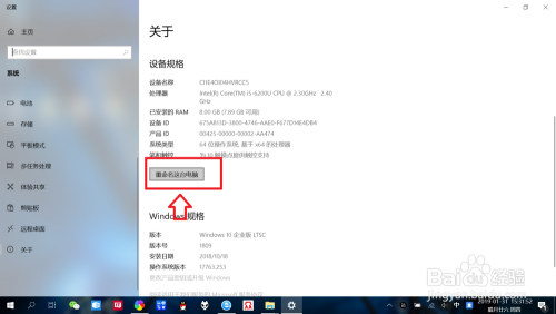 标的目的下滑动找到“设备规格”,点击“重定名这台电脑”,进入电脑重定名设置。