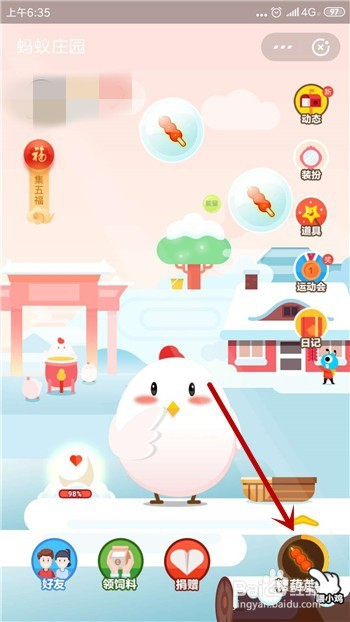 然后点击蚂蚁庄园下方的【去喂食】按钮。