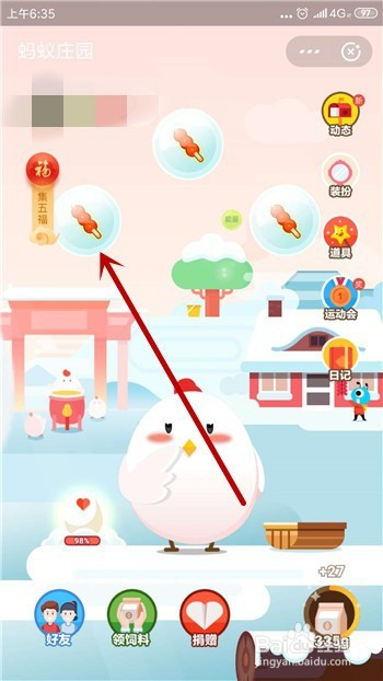接着在集五福的体例里点击【蚂蚁庄园】。