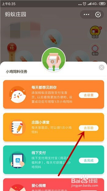 领饲料使命里有庄园小讲堂,点击【去答题】。