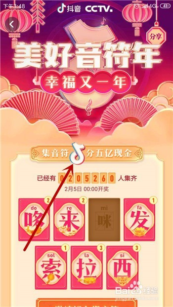 接着在抖音的左上角点击【集音符分五亿】活动。
