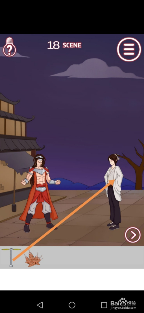 第18关先点击树上的叶子,然后点击标的目的右箭头到右边去。