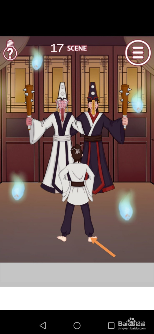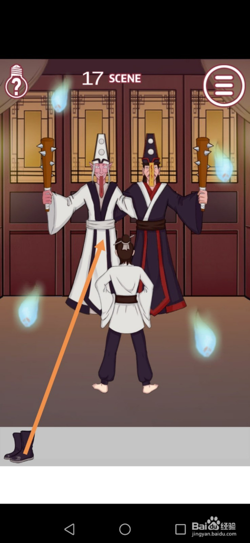 第17关先点击本家儿角的鞋子,然后将鞋子拖动到白无常身上。