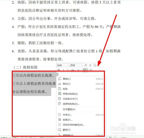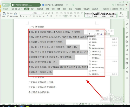 选中第一年夜项“告假类别”下面的所有小项,弹右键菜单