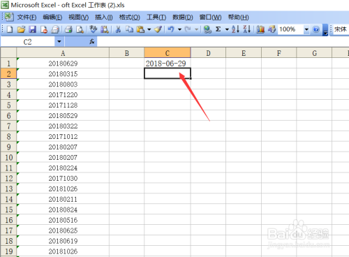拖动后,在对应的位置就会把数字字符串转换为日期格局了,如下图所示。