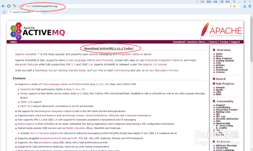 打开浏览器,拜候网址activemq.apache.org,如下图所示: