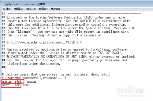 jetty-realm.properties文件(该文件保留着用户名和密码信息),如下图所示: