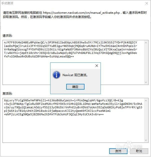 复制“Activation Code”文本框里面的激活码粘贴到“手动激活”对话框中的“激活码”文本框,点击【激活】。