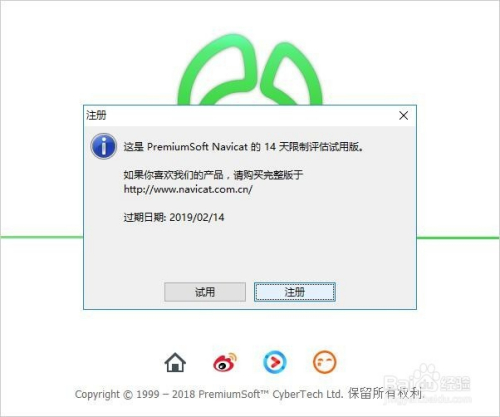 Navicat 12 for MySQL 是一个壮大的MySQL数据库办理和开辟东西,到今朝,Navicat for MySQL 最新版本 12.1,如图,刚下载下来有 14 天 免费的全功能 Navicat 试用版,法式员采办贸易软件来小我进修利用,几多有点不划算,究竟结果当作本较高,那么如何激活 Navicat 12 for MySQL 呢?,小编清算了一些方式,在此与大师分享。
