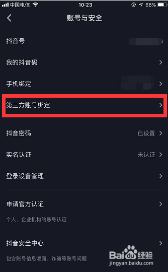 然后在账号与平安本家儿页下找到【第三方账号绑定】一栏,如图所示,点击进去对微信进行解绑!