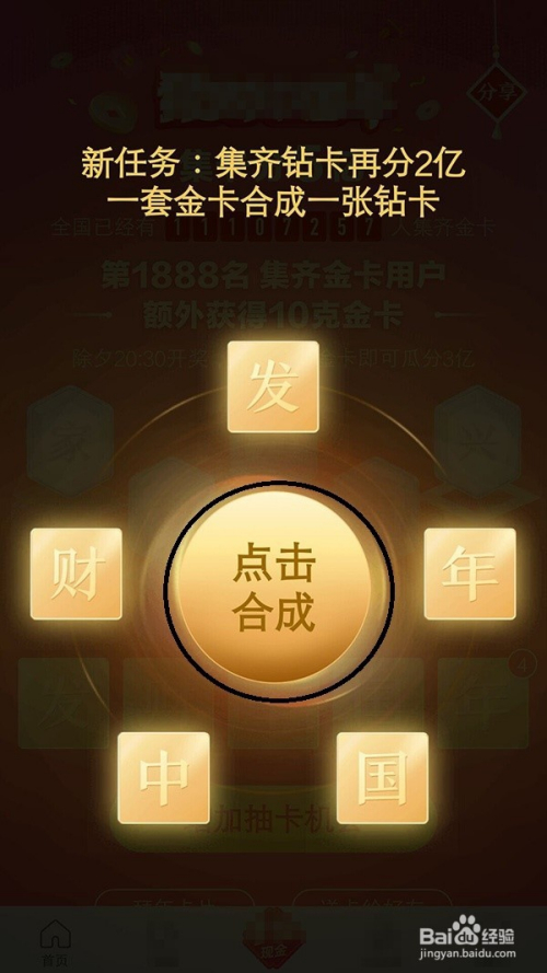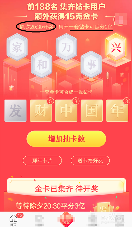 点击【合当作】,合当作之后,就可以期待金卡2月4日开奖,瓜分现金红包。