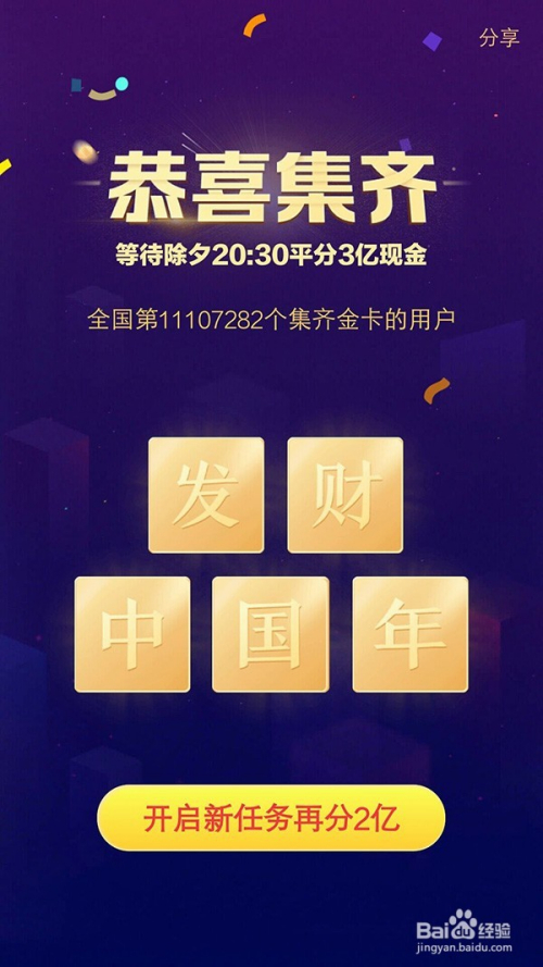 若是已经集齐金卡(发家中国年),会呈现以下页面,点击【开启新使命】。