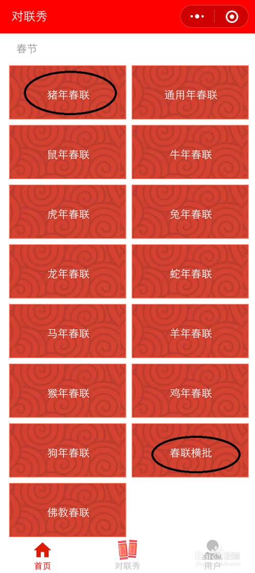 进入【猪年对联】就可以看到良多对联了,点击本身想要的对联。