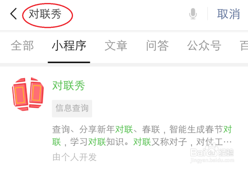 打开微信,搜刮小法式【春联秀】,点击打开它。