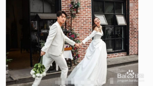 要想拍摄好婚礼外的照片,也可以选择年夜街商铺为布景,如许可表达出新人在逛街时的欢畅表情,如下图所示,显得新人很是幸福的逛街。