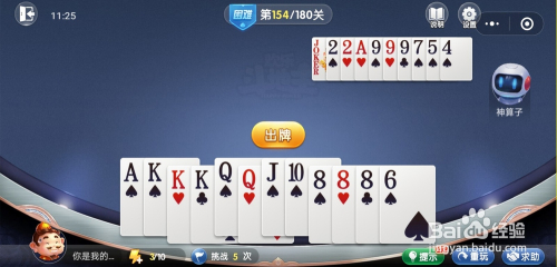 第154关先打出10-A顺子,接着打出三张8带一对K。