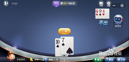 跑得快打出一张4,我打出一张10就过关了。